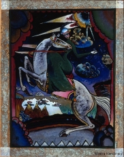 Le esperienze del giovane Kandinsky si inserivano in una corrente di pensiero sviluppatasi in Russia per tutto l’800, sorta in seguito alle ripercussioni scaturite dopo l’invasione napoleonica e la conseguente distruzione di Mosca. Tale corrente era volta a ricercare nella cultura primitiva e folclorica del mondo contadino, le radici di un’originaria e intatta civiltà russa. Di questo universo favoloso ed esoterico, contrapposto al razionalismo dell’occidente europeo, facevano parte le favole e le canzoni popolari trasmesse oralmente fin dal Medioevo e riprese poi in letteratura da Pushkin e Dostoevskji e in musica da Rimsky Korsakov, prima, e poi dagli altri compositori russi di inizio ‘900, da Mussorsgky a Skriabin a Stravinsky.