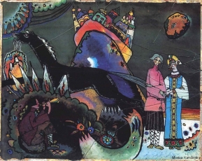 Le esperienze del giovane Kandinsky si inserivano in una corrente di pensiero sviluppatasi in Russia per tutto l’800, sorta in seguito alle ripercussioni scaturite dopo l’invasione napoleonica e la conseguente distruzione di Mosca. Tale corrente era volta a ricercare nella cultura primitiva e folclorica del mondo contadino, le radici di un’originaria e intatta civiltà russa. Di questo universo favoloso ed esoterico, contrapposto al razionalismo dell’occidente europeo, facevano parte le favole e le canzoni popolari trasmesse oralmente fin dal Medioevo e riprese poi in letteratura da Pushkin e Dostoevskji e in musica da Rimsky Korsakov, prima, e poi dagli altri compositori russi di inizio ‘900, da Mussorsgky a Skriabin a Stravinsky.