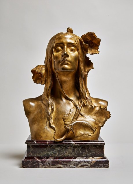The show embraces the sensuality of Art Nouveau, which at times is risqué, and features a wide range of works from sculpture, graphics, and books to ceramics, glass and furniture. Early examples include Felix Vallotton’s (1865-1925) great original poster L’Art Nouveau (fig. 1), the first public presentation of the name when it appeared outside Siegfried Bing’s Maison de l’Art Nouveau in 1895, and Aubrey Vincent Beardsley’s (1872-1898) magnificent Salome prints (fig. 2), which many believe to be the first true works in the style. Masterpieces by Alphonse Mucha (1860-1939), Maurice Bouval (1863-1916), Théophile Alexandre Steinlen (1859-1923), François-Raoul Larche (1860-1912), Paul François Berthoud (1870-1939), Jean-Joseph Carriès (1855-1894), and many others, make this a delicious display of fin de siècle art and design.
