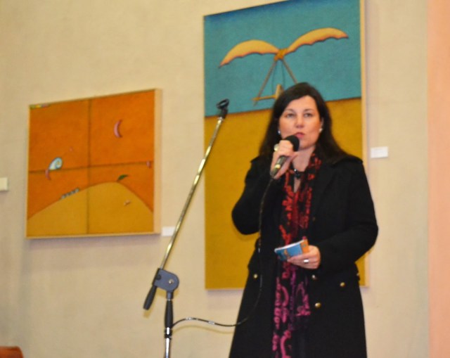 | Giovanna M. Carli mentre interviene al vernissage della mostra, mettendo in evidenza i valori della pittura di Giuliano Ghelli, ph. by Giodì, 2016, all rights reserved |