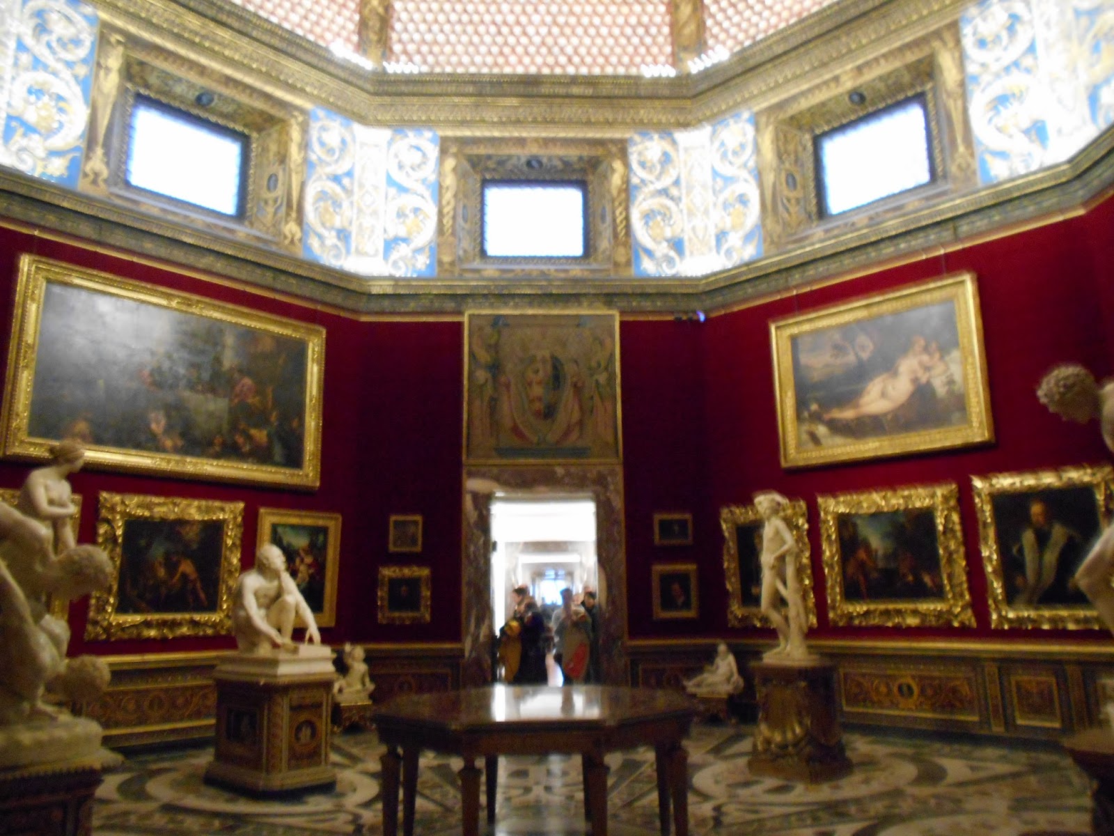 La Tribuna degli uffizi è un piccolo gioiello architettonico ricco di riferimenti e significati cosmologici. Costruita nel 1584 da Bernardo Buontalenti, è coronata da una cupola incrostata di conchiglie di madreperla su fondo di lacca scarlatta. Il colore rosso rappresenta il fuoco, la rosa dei venti, alzate lo sguardo (è lassù, in alto!), l’aria, le conchiglie l’acqua, i marmi e le pietre dure della pavimentazione la terra. Uno spettacolo veramente eccezionale per la vista e lo spirito, capace di mettere l’uomo in comunicazione, non solo con l’arte e la bellezza ma con l’intero cosmo.